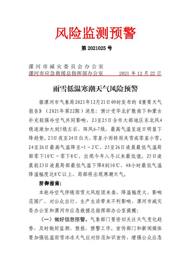 來源:漯河市減災委員會辦公室 時間:2021-12-22 15:59:00 點擊: 今日評論: