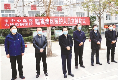 • 市中心醫(yī)院市傳染病醫(yī)院隔離病區(qū)醫(yī)護人員實現首次換崗 蒿慧杰劉尚進等出席交接儀式