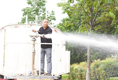 “使用這種高壓水槍要順著一個(gè)方向一點(diǎn)一點(diǎn)沖洗,不要這里沖一下那里沖一下。”看到環(huán)衛(wèi)工人正在路上沖洗清掃,楊躍偉耐心地向他們講解高壓水槍的使用方法和技巧。
