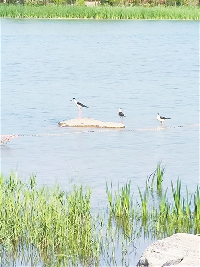“黑翅長(zhǎng)腳鷸對(duì)生存環(huán)境要求高,喜好棲息于開闊平原草地中的湖泊、淺水塘和沼澤地帶。它們是水生環(huán)境變化的指示性動(dòng)物之一,具有重要的生態(tài)價(jià)值。”梁新星說(shuō)。