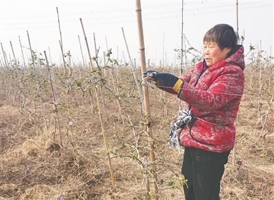 2月25日,召陵區(qū)老窩鎮(zhèn)宿寨村的金銀花種植基地,工人忙著抹芽、綁枝,做好金銀花春季管理工作。