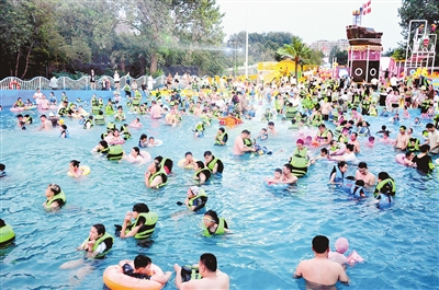 神州鳥園嬉水樂園內(nèi)人潮涌動(dòng)。