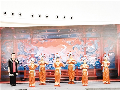 與孔淑瑩合唱的是郾城區(qū)龍湖學(xué)校非遺社團(tuán)的孩子們,從今年4月份開始排練。8歲的表演者張議文說(shuō):“我很喜歡唱戲,能在這里為大家表演特別開心。”