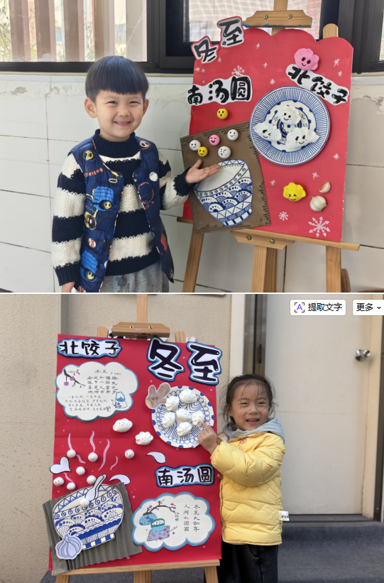 本次冬至主題系列活動依據(jù)幼兒年齡特點,設計了層次分明、趣味橫生、知行合一的活動內(nèi)容,讓傳統(tǒng)文化在孩子們看一看、做一做、嘗一嘗的親身經(jīng)歷中變得可感、可知、可傳承。