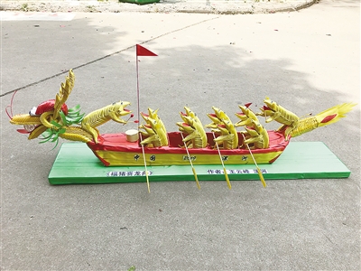 “先用鐵絲編織出模型,然后再把彩帶依著鐵絲的模型纏在外面,彩帶要錯(cuò)落有致,能體現(xiàn)出龍頭及金豬身上的紋路,光龍頭就編了四個(gè)多小時(shí)。”王云峰說(shuō),龍舟雖然看著簡(jiǎn)單,可制作起來(lái)并不容易。為了能盡快完工,他每天晚上都忙到12點(diǎn)多。