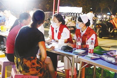 6月13日晚,漯河柳江醫(yī)院組織十多名醫(yī)護人員走進市體育場夜間廣場消費點開展義診活動。