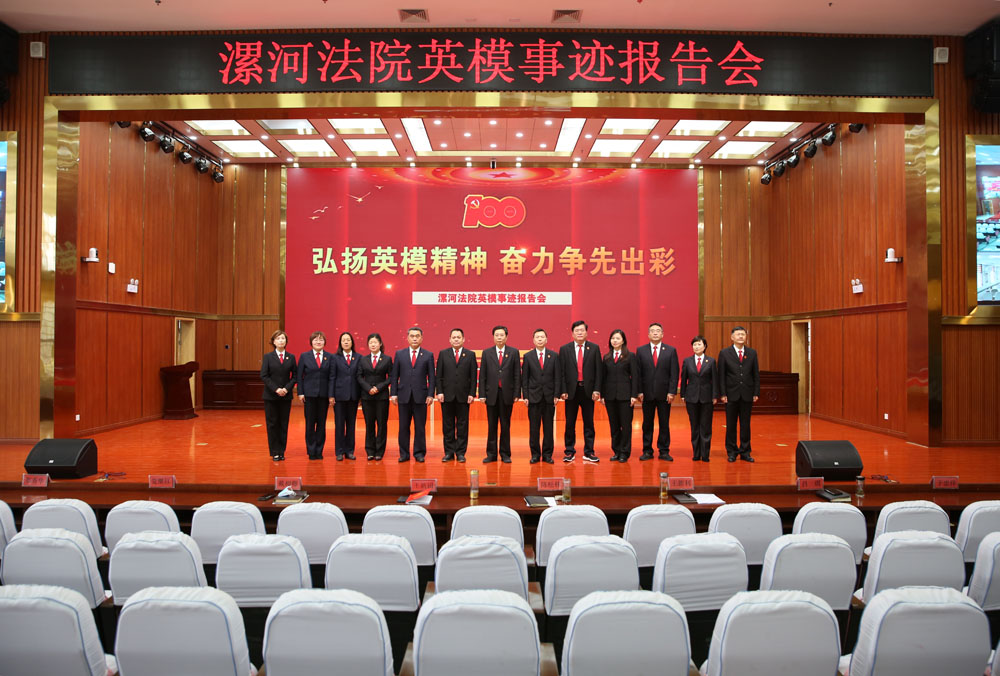 {漯河中院黨組書記、院長陳松林和英模代表合影}