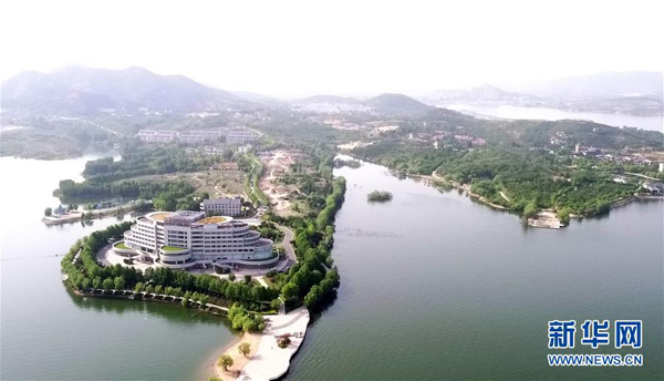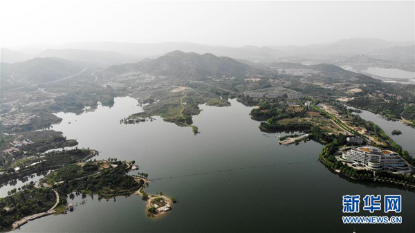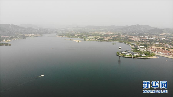 這是5月17日拍攝的雪野湖景色(無人機(jī)照片)。 山東濟(jì)南風(fēng)景區(qū)——雪野湖波光粼粼,岸邊綠樹環(huán)抱,加上星星點(diǎn)點(diǎn)的帆船在湖面搖曳,景色宜人。 新華社記者王凱攝