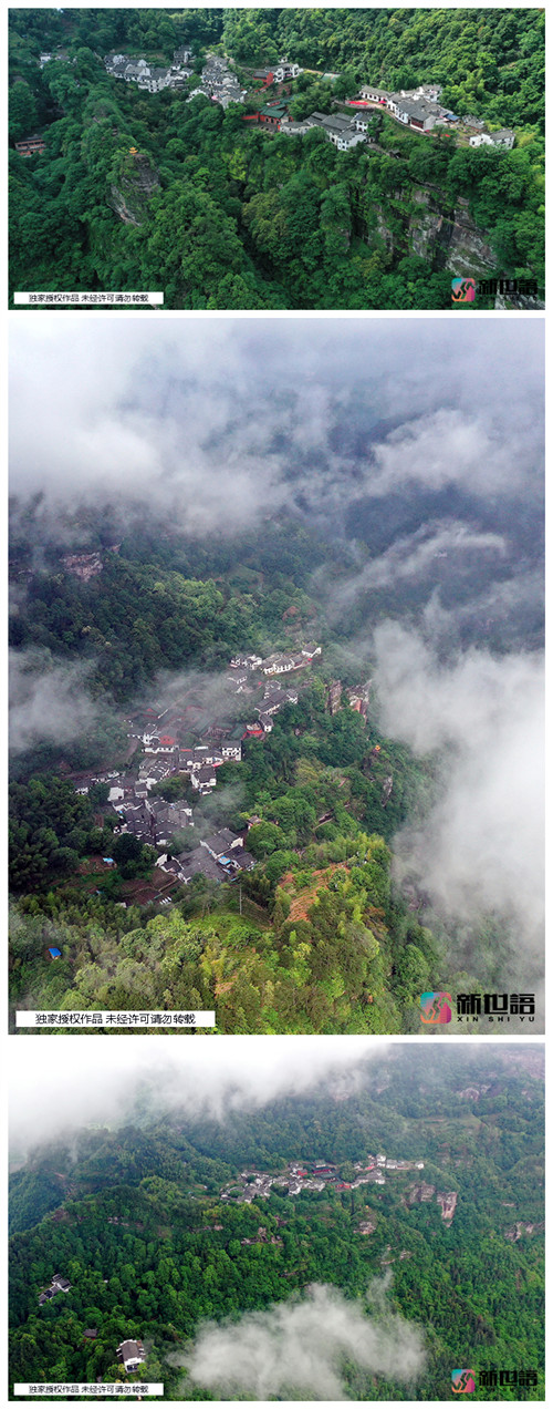 鏡頭鳥(niǎo)瞰安徽齊云山月華天街 云遮霧繞宛若仙境