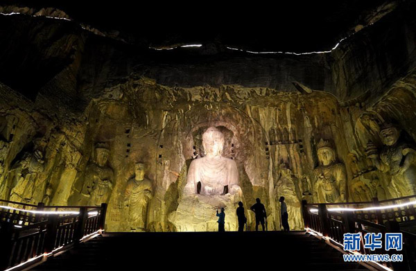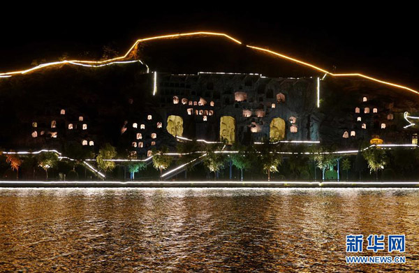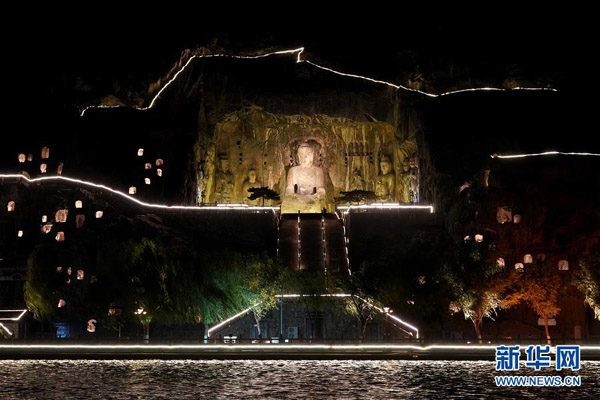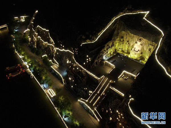 2020年4月起,河南省洛陽市龍門石窟景區(qū)推出“夜游龍門”活動,讓游客在晚間領略石窟造像的別樣風采。 新華社記者 李安 攝