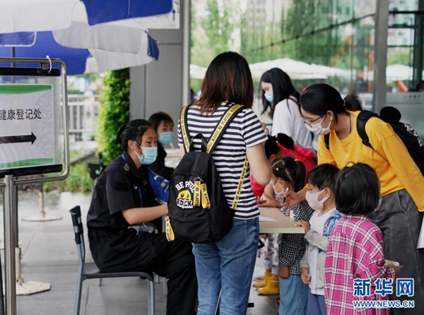 7月15日,在上海自然博物館入口,工作人員對(duì)入館觀眾進(jìn)行健康登記。 進(jìn)入暑假,不少家長(zhǎng)帶著孩子到上海自然博物館參觀。該展館采取實(shí)名制分時(shí)段購(gòu)票參觀、參觀人數(shù)分時(shí)限流、發(fā)布次日參觀人數(shù)預(yù)測(cè)等舉措,加強(qiáng)防疫常態(tài)化管理。 新華社記者 劉穎 攝