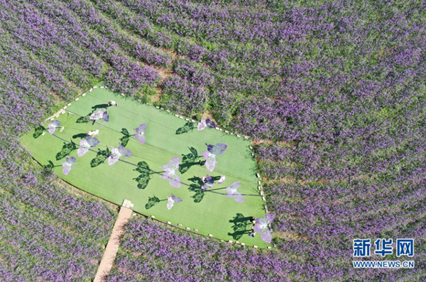 這是7月12日拍攝的甘肅省金昌市紫金苑景區(qū)(無(wú)人機(jī)照片)。 甘肅省金昌市是我國(guó)最大的鎳鈷生產(chǎn)基地,有“鎳都”之稱。近年來(lái),金昌市大力推進(jìn)花園城市建設(shè),利用當(dāng)?shù)貢円箿夭畲蟆⒐庹粘渥愕茸匀粭l件,引種花卉,讓這座地處戈壁的工業(yè)城成為掩映在花海中的田園花城。 新華社發(fā)(杜哲宇 攝)