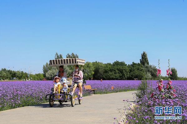 7月12日,市民在甘肅省金昌市紫金苑景區(qū)游玩。 甘肅省金昌市是我國(guó)最大的鎳鈷生產(chǎn)基地,有“鎳都”之稱。近年來(lái),金昌市大力推進(jìn)花園城市建設(shè),利用當(dāng)?shù)貢円箿夭畲蟆⒐庹粘渥愕茸匀粭l件,引種花卉,讓這座地處戈壁的工業(yè)城成為掩映在花海中的田園花城。 新華社發(fā)(杜哲宇 攝)