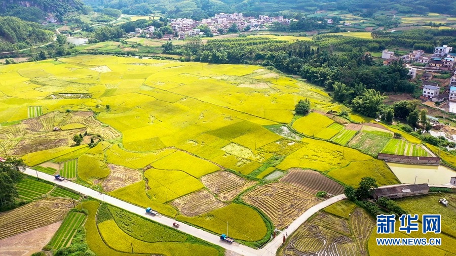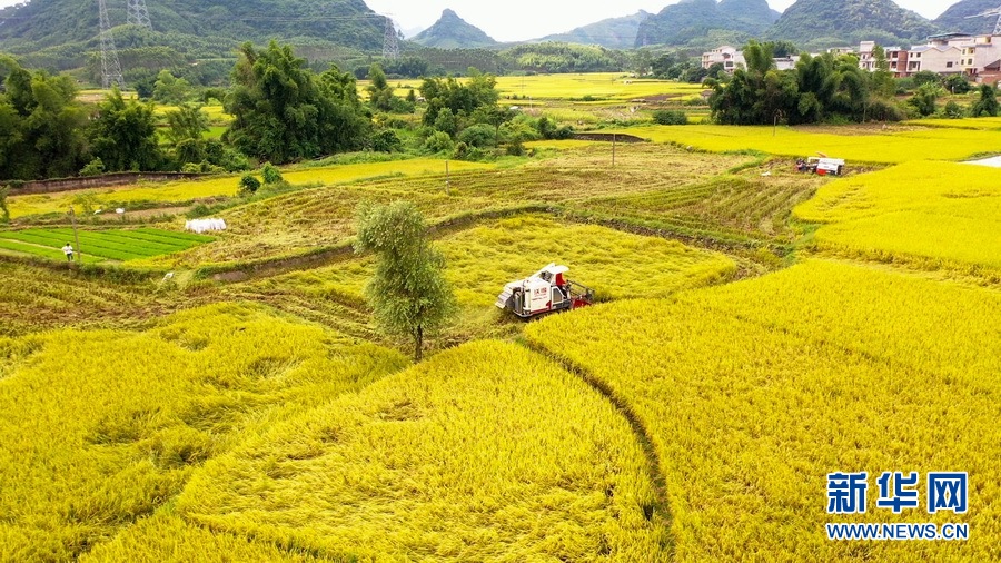 近日,在廣西柳州市魚峰區(qū)里雍鎮(zhèn)龍江村,各種農(nóng)用機械開進場,拉開了早稻收割的序幕。一眼望去,成片的早稻在陽光下金燦燦一片,當(dāng)?shù)剞r(nóng)民抓緊晴好天氣收獲歸倉。