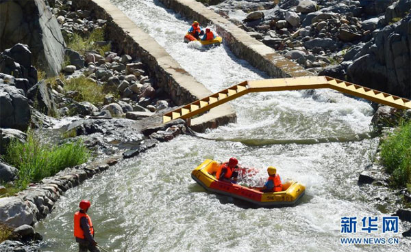 9月16日,在石家莊市贊皇縣的嶂石巖景區(qū),游客體驗(yàn)漂流。 隨著文化與旅游不斷深入融合,河北省石家莊市贊皇縣以當(dāng)?shù)匚幕厣珵橹危钊胪诰蜇S富的文化資源和歷史底蘊(yùn),將非遺民俗表演、實(shí)景劇演出等融入景區(qū)的規(guī)劃設(shè)計(jì)、建設(shè)、環(huán)境場景提升中,提升游客的參與度和體驗(yàn)感。 新華社發(fā)(張曉峰 攝)