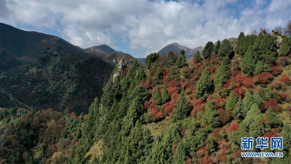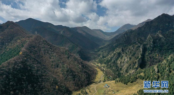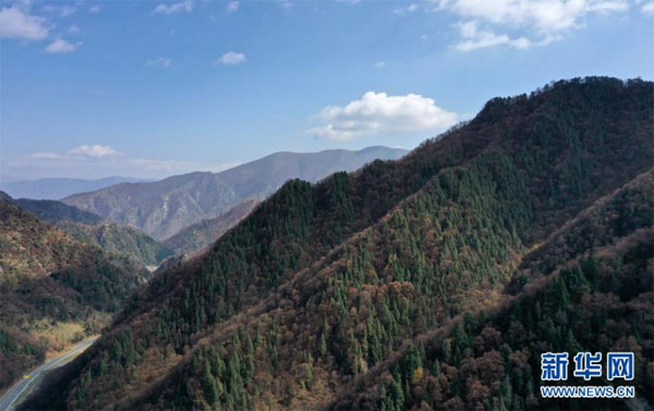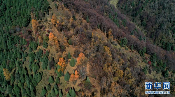 這是10月15日拍攝的北山國(guó)家森林地質(zhì)公園扎龍溝秋景(無(wú)人機(jī)照片)。 深秋時(shí)節(jié),位于青海省海東市互助土族自治縣境內(nèi)的北山國(guó)家森林地質(zhì)公園內(nèi),山巒、森林與藍(lán)天組成壯美的秋日畫(huà)卷。 新華社記者 張宏祥 攝