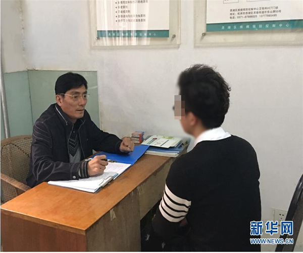 劉建寧在杭州市西湖區(qū)疾病預防控制中心自愿咨詢檢測室接受咨詢(資料照片)。 新華社發(fā)