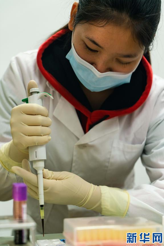 11月26日,防治艾滋病公益組織志愿者在檢測血樣。 新華社記者 王冠森 攝