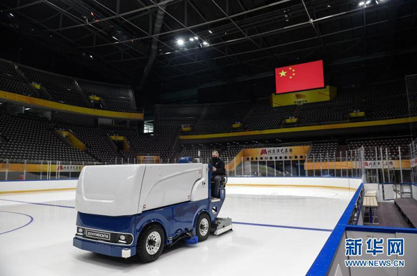 尼爾森·多恩·莫法特在國(guó)家體育館內(nèi)制冰(1月27日攝)。