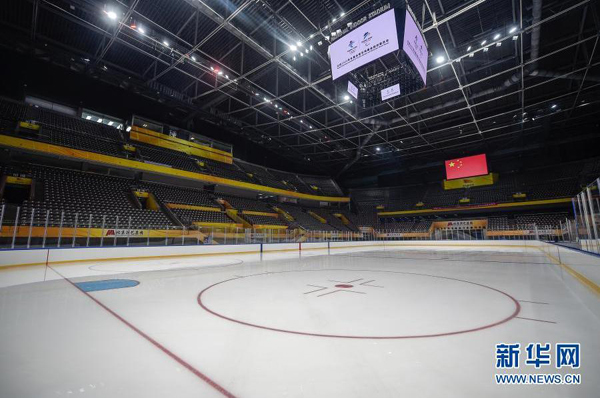 為北京冬奧會(huì)冰球比賽場(chǎng)館。場(chǎng)館新增兩塊冬奧標(biāo)準(zhǔn)冰面,一塊在主館用于正式比賽,