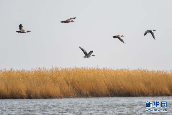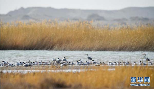 大批候鳥飛抵居延海