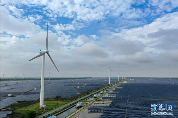 在江蘇省東臺(tái)市沿海灘涂綜合開發(fā)示范區(qū),集風(fēng)力發(fā)電、光伏發(fā)電、水面養(yǎng)殖為一體的“風(fēng)光漁”立體開發(fā)模式正在形成,實(shí)現(xiàn)灘涂資源的高效利用與生態(tài)開發(fā)。