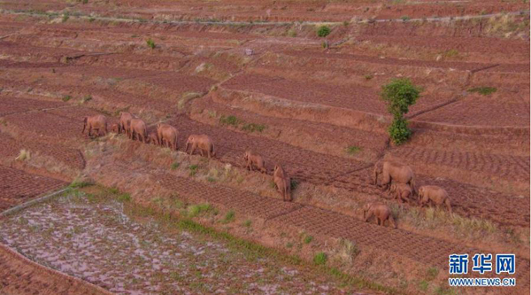 6月6日在昆明市晉寧區(qū)夕陽彝族鄉(xiāng)拍攝的野象(無人機照片)。