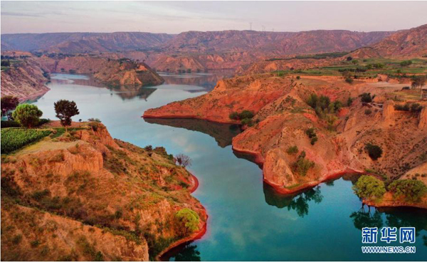 8月6日,朝霞映照下的靖邊縣龍洲鎮(zhèn)波浪谷丹霞景區(qū)。