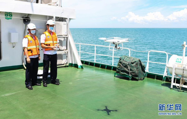 8月16日,海南海事部門工作人員在“海巡1102”輪上使用無(wú)人機(jī)查看瓊州海峽通航情況。據(jù)了解,為保障數(shù)萬(wàn)艘漁船集中通過瓊州海峽出海作業(yè),海南海事、農(nóng)業(yè)、綜合執(zhí)法等部門聯(lián)合開展巡航執(zhí)法行動(dòng),共同護(hù)航開漁安全。