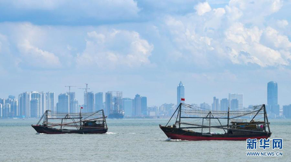 8月16日,漁船陸續(xù)通過瓊州海峽。