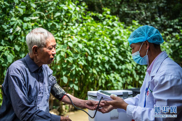 章忠武在給趙仕明老人測量血壓(8月16日攝)。