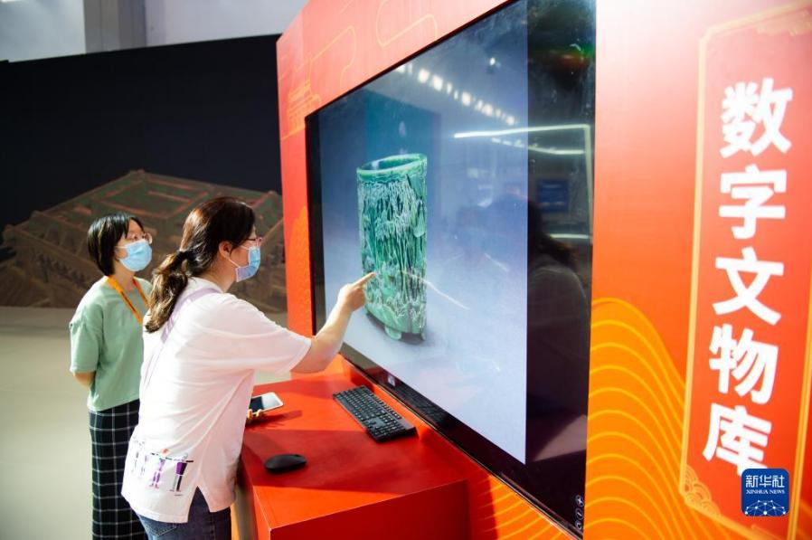9月7日,觀眾在故宮博物院展位體驗數(shù)字文物庫。
