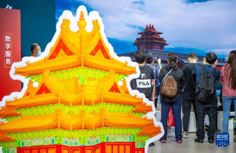 9月2日至7日,2021年中國國際服務(wù)貿(mào)易交易會在北京舉行。位于國家會議中心展區(qū)的故宮博物院展位,運用數(shù)字技術(shù)再現(xiàn)故宮的建筑工藝、歷史典故等內(nèi)容,吸引眾多觀眾參觀體驗。