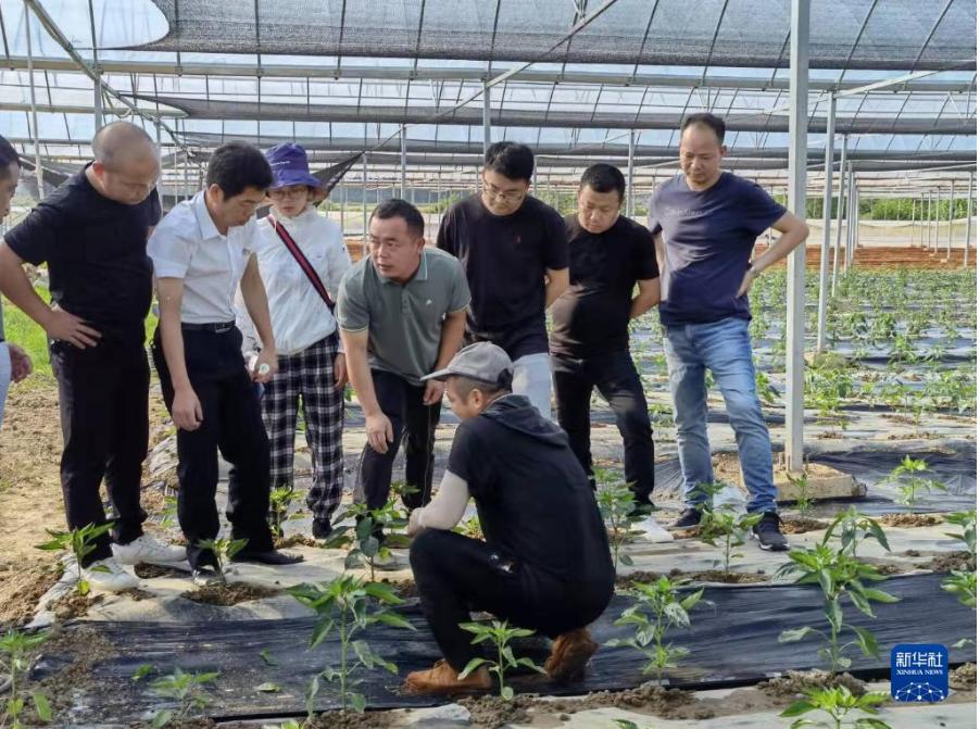 技術專家在湖南省汨羅市白塘鎮(zhèn)的育秧大棚給辣椒種植戶指導種植技術(9月13日攝)。