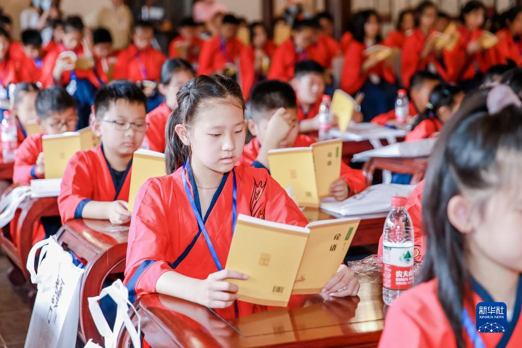 9月25日,滬臺(tái)學(xué)子共同朗誦《論語(yǔ)》。新華社發(fā)