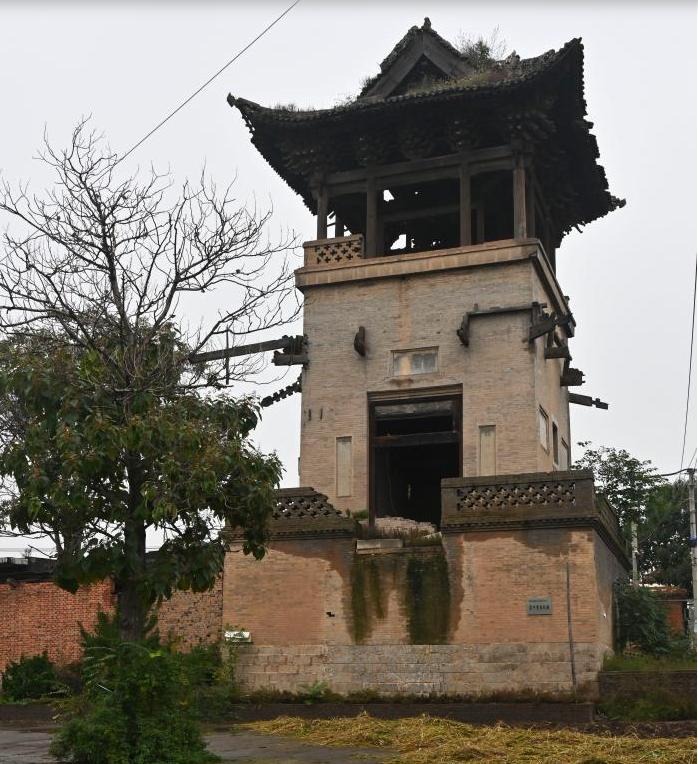 位于山西省襄汾縣西中黃村的春秋樓主體結(jié)構(gòu)出現(xiàn)傾斜(10月12日攝)。
