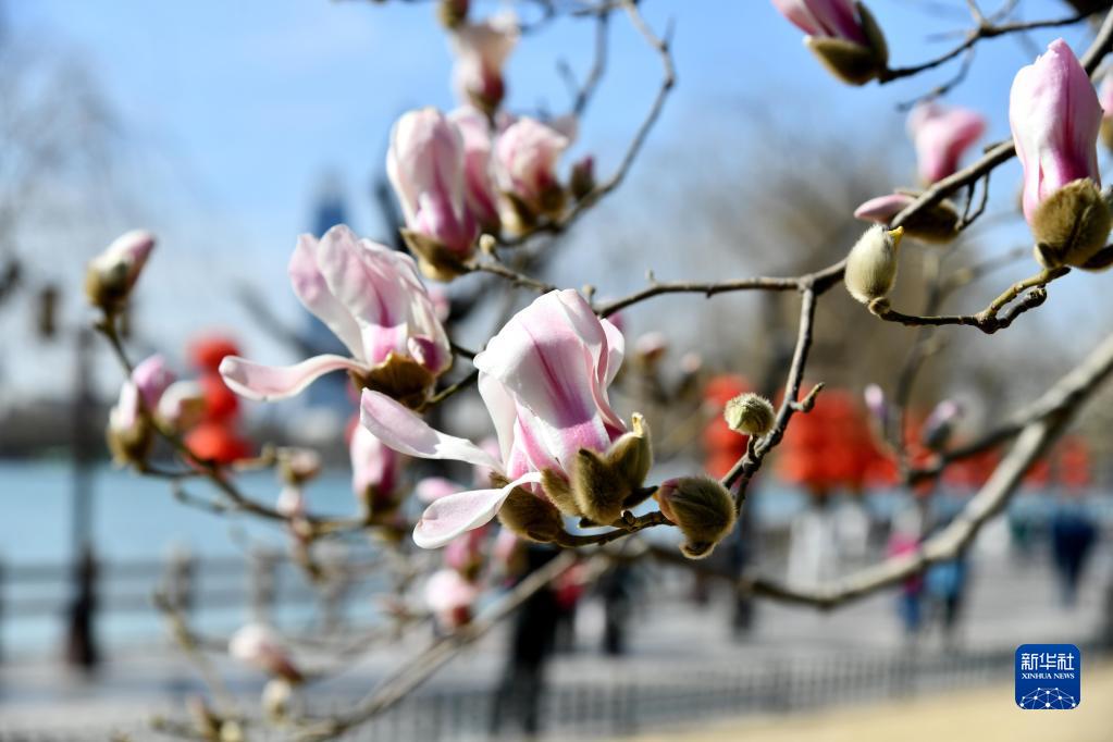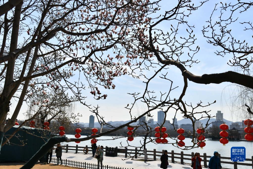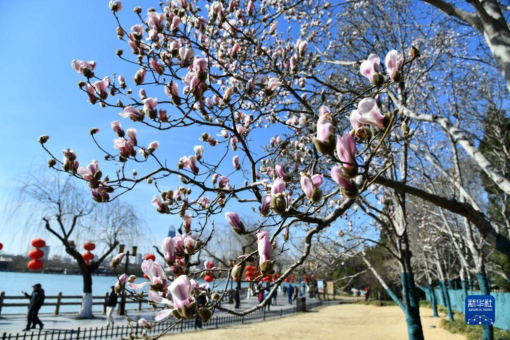 近日,山東省濟(jì)南市天氣晴好氣溫回升,大明湖景區(qū)內(nèi)玉蘭花陸續(xù)綻放,給城市帶來了春天的氣息。