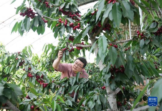 4月26日,秦皇島市山海關(guān)區(qū)石河鎮(zhèn)毛家溝村的果農(nóng)在采摘櫻桃。