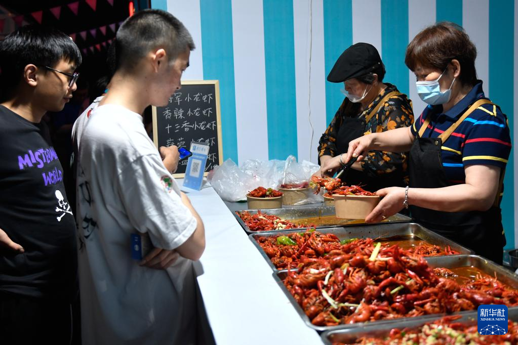 6月1日,游客在品嘗石淙清水小龍蝦。