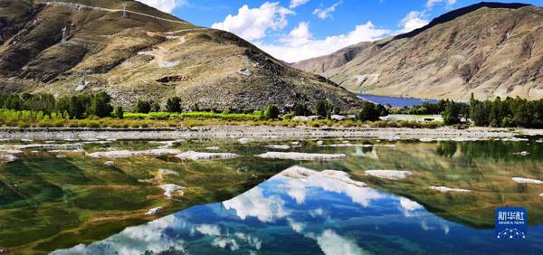 這是拉薩市達孜區(qū)巴嘎雪濕地(6月26日攝,手機照片)。夏日的拉薩河谷,藍天白云、綠水青山,油菜花和麥浪宛如調(diào)色板,構(gòu)成一幅生機勃勃的高原景致。新華社記者 沈虹冰 攝