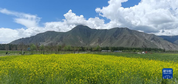 這是拉薩河畔景致(6月18日攝,手機照片)。夏日的拉薩河谷,藍天白云、綠水青山,油菜花和麥浪宛如調(diào)色板,構(gòu)成一幅生機勃勃的高原景致。新華社記者 沈虹冰 攝