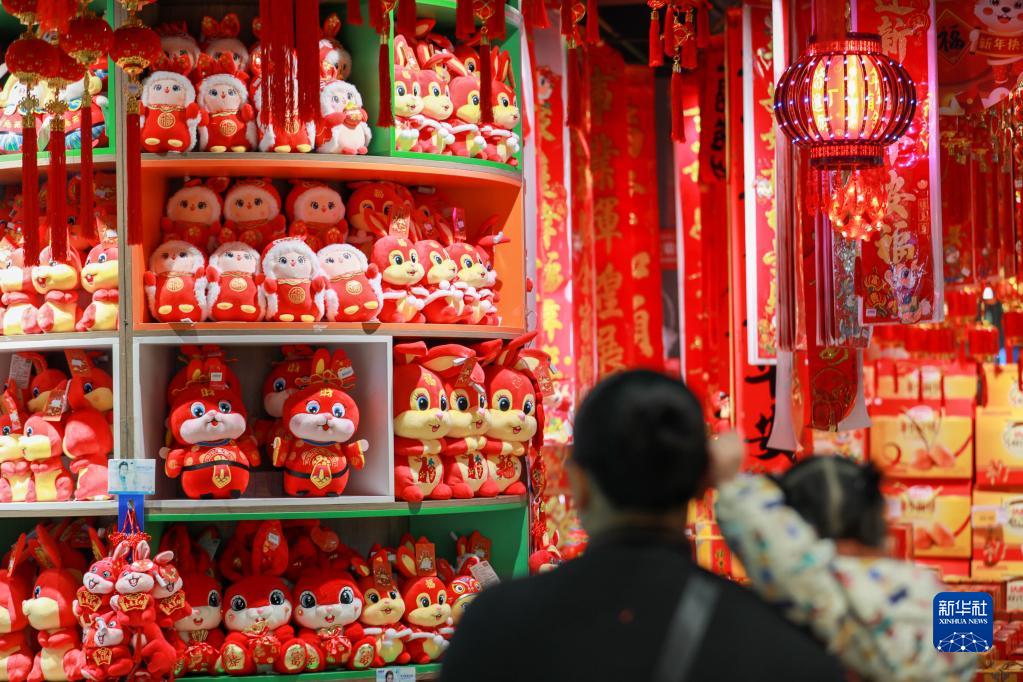 春節(jié)臨近,多地年貨市場紅火起來,人們選購春節(jié)飾品,迎接新春佳節(jié)。新華社記者 盧漢欣 攝