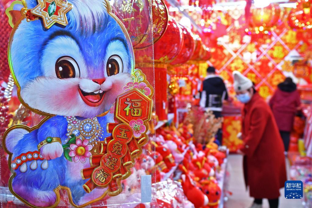 1月9日,在江蘇省揚州市一處小商品市場,居民在選購節(jié)慶飾品。新華社發(fā)(孟德龍 攝)