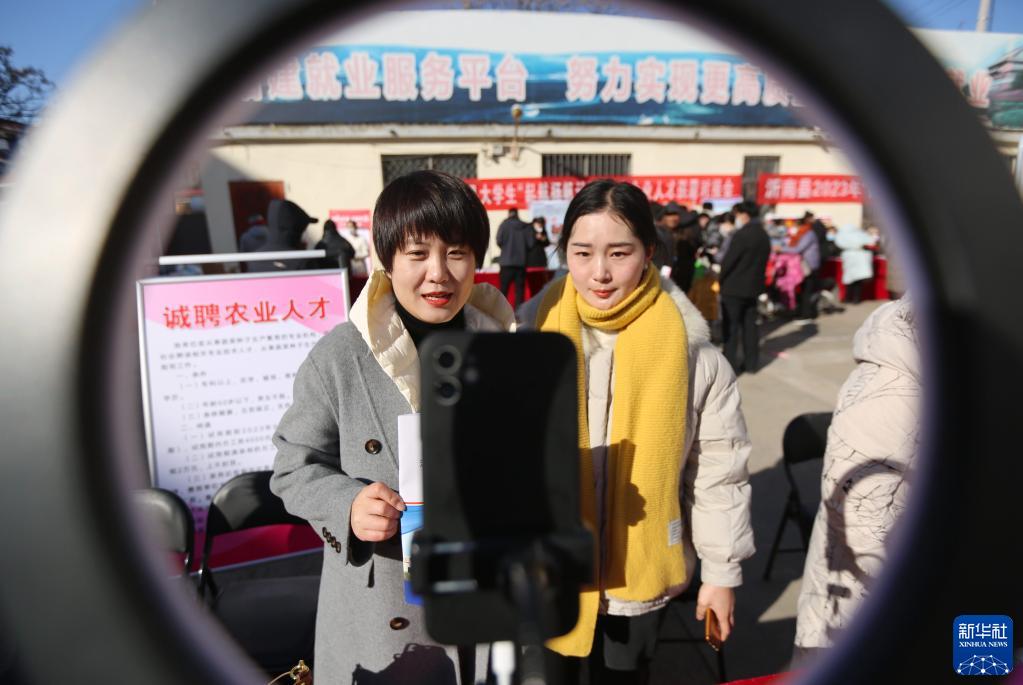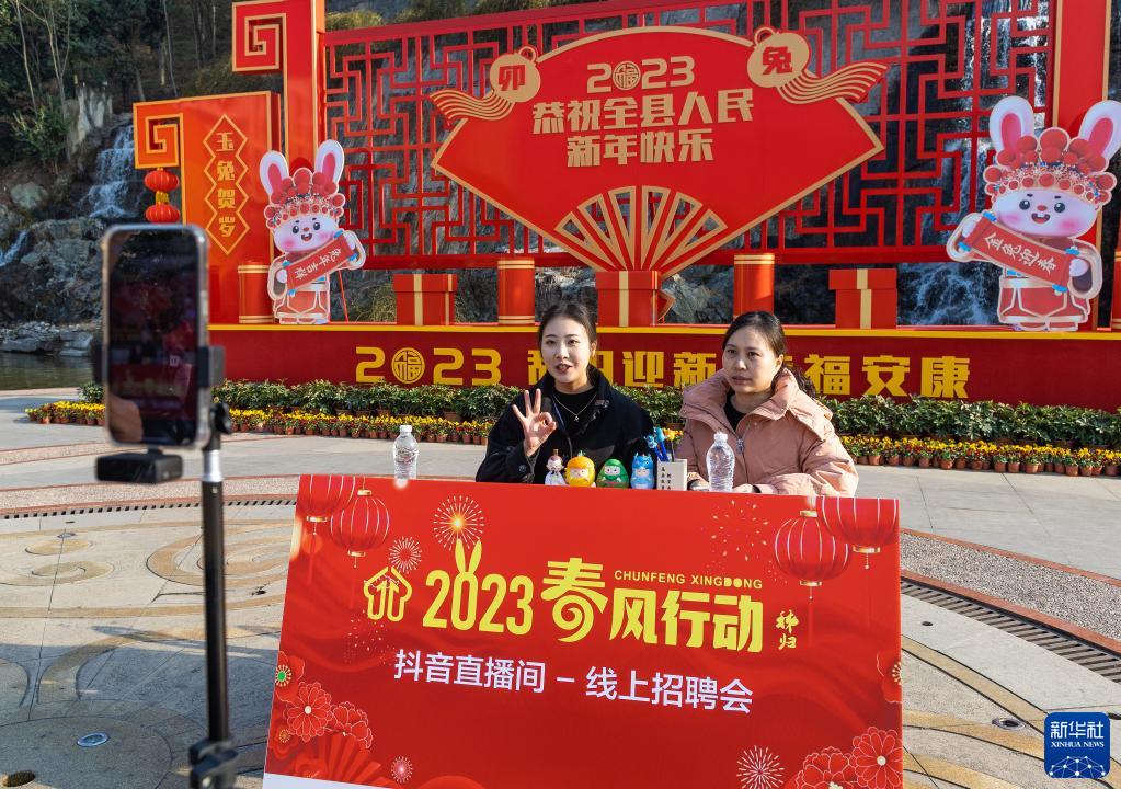 1月29日,用人單位在湖北省宜昌市秭歸縣的新春人才招聘會(huì)上進(jìn)行直播,線(xiàn)上介紹崗位信息。