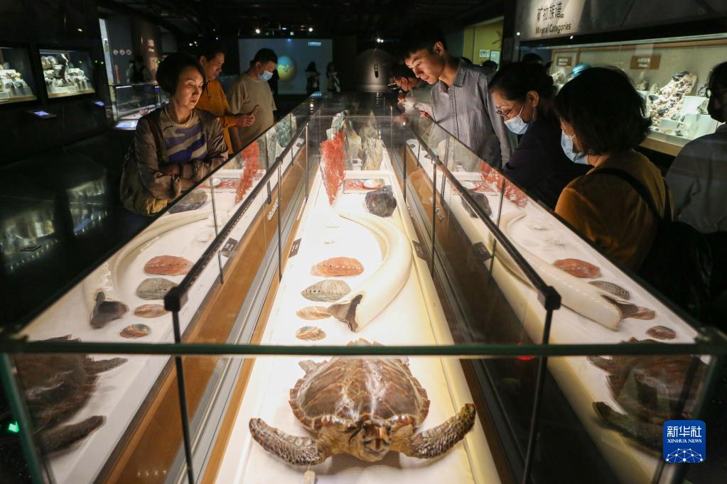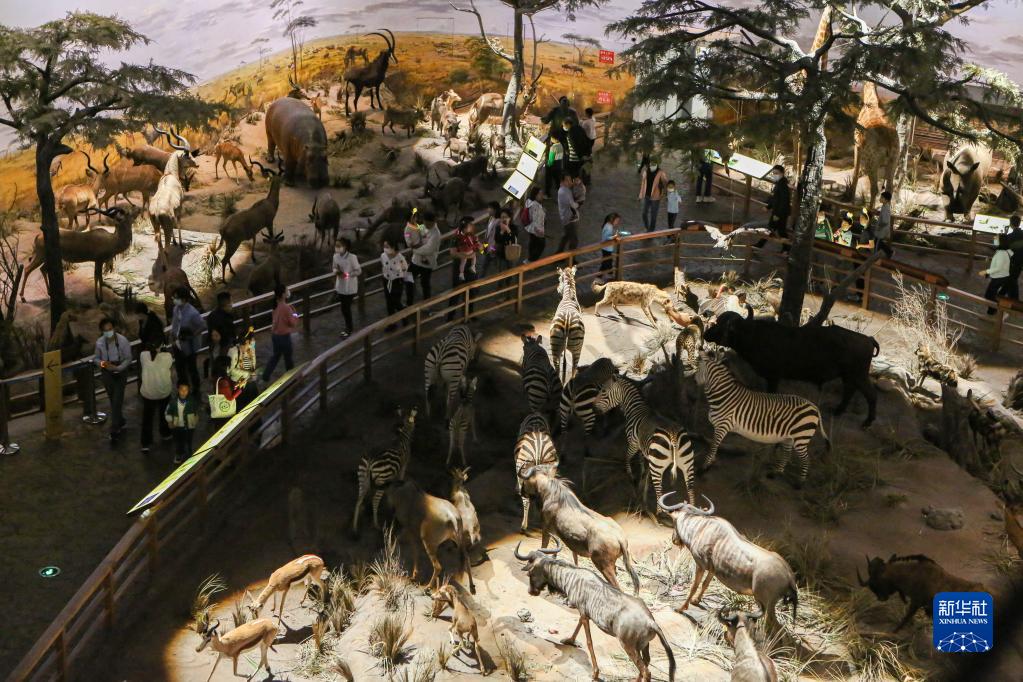 5月18日,游客在上海自然博物館(上??萍拣^分館)內(nèi)參觀。