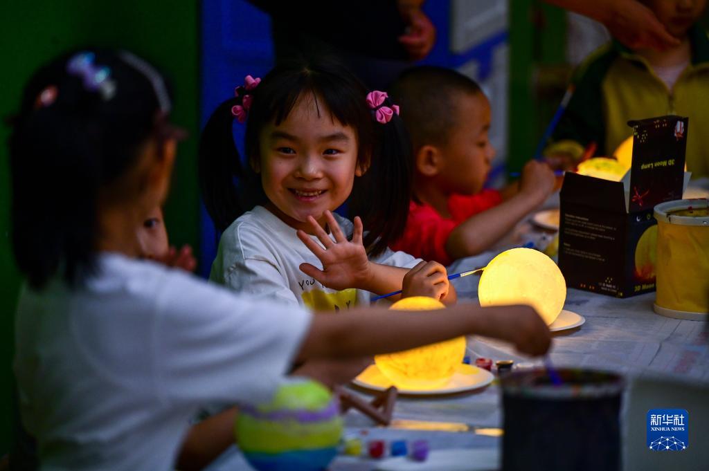 5月18日,小朋友在內(nèi)蒙古博物院“博物館之夜”活動中做手工。