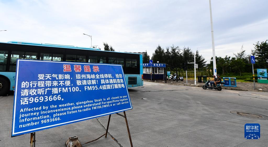 這是??谑行潞8弁獾沫傊莺{停航信息提示牌(7月17日攝)。
