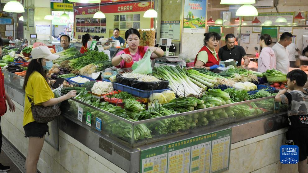 7月17日,在海口市金貿(mào)文華農(nóng)貿(mào)市場(chǎng),市民有序選購(gòu)蔬菜。