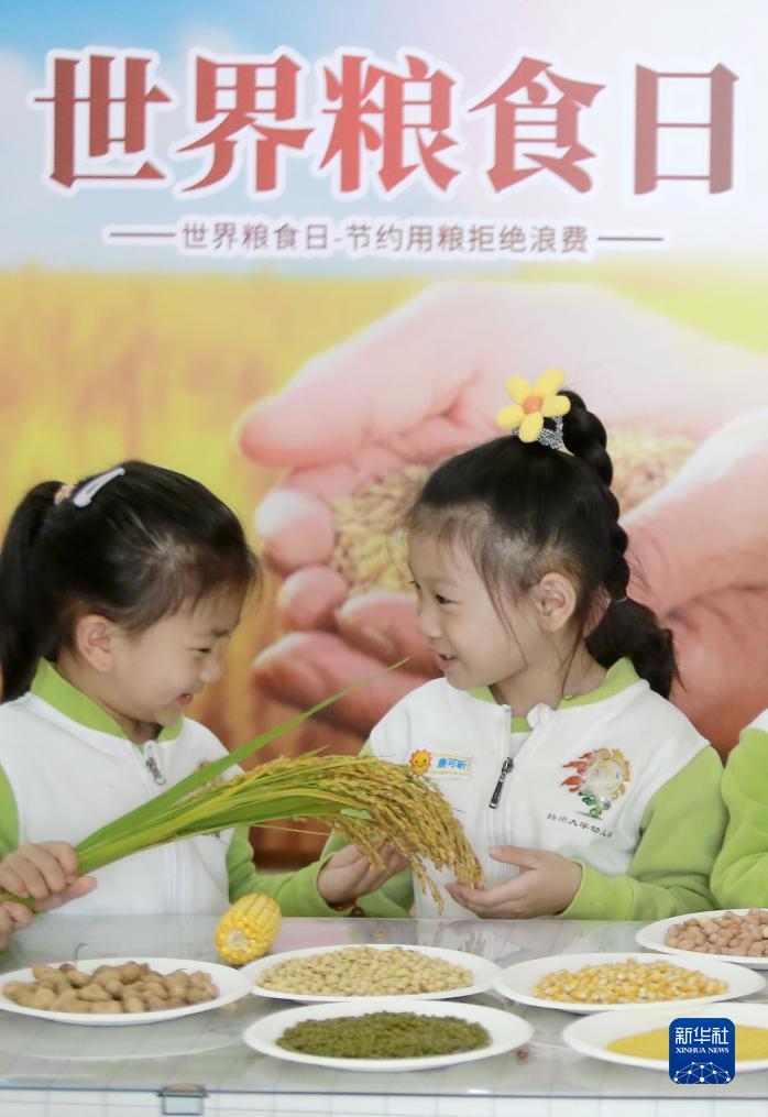 當(dāng)日是世界糧食日,各地幼兒園、小學(xué)、中學(xué)等開展豐富多彩的活動(dòng),讓少年兒童認(rèn)識(shí)糧食、體驗(yàn)秋收,培養(yǎng)孩子們愛惜和節(jié)約糧食的意識(shí)。