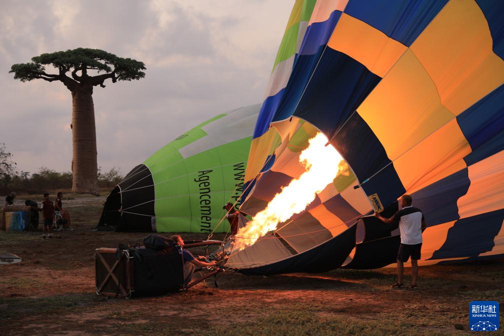 11月25日,在馬達(dá)加斯加穆龍達(dá)瓦猴面包樹(shù)大道,熱氣球旅行愛(ài)好者準(zhǔn)備升空熱氣球。